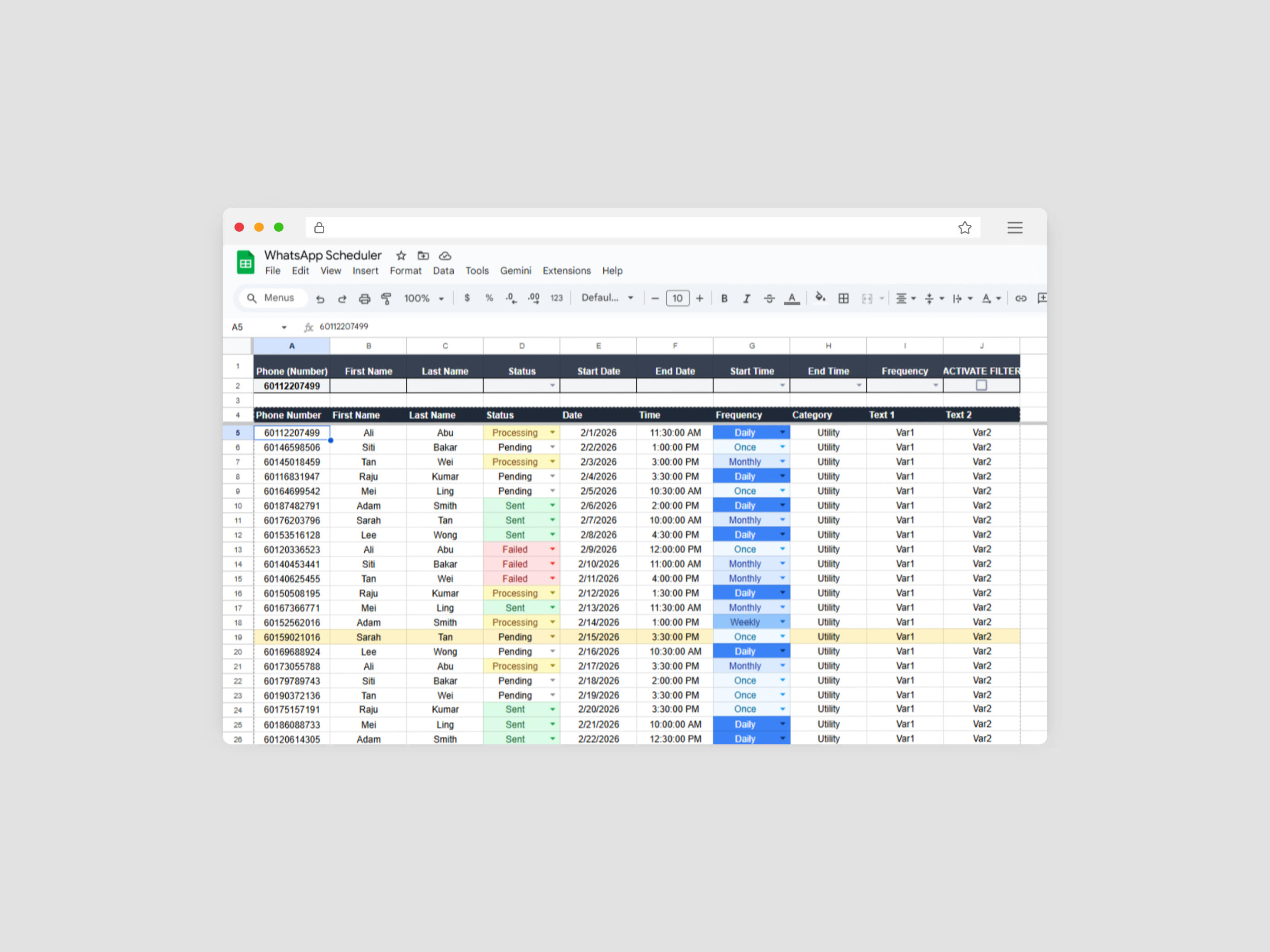 Schedule, track, and manage your WhatsApp campaigns without ever leaving Google Sheets.